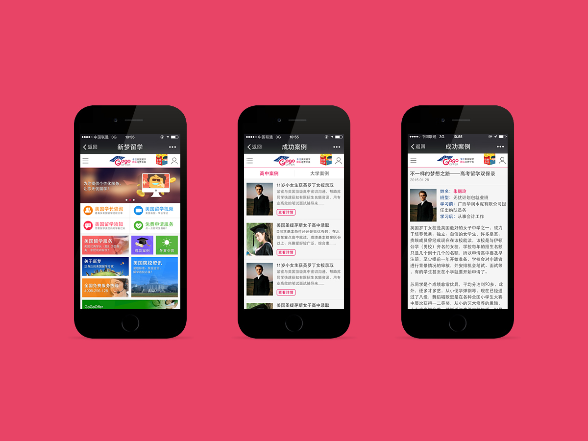 廣州新夢留學(xué)咨詢有限公司為一家專門從事美國留學(xué)業(yè)務(wù)的專業(yè)咨詢公司,隸屬于美國新夢服務(wù)公司。公司是目前國內(nèi)提供全面的、智能透明的留學(xué)服務(wù)供應(yīng)商之一,并首次推出留學(xué)經(jīng)驗分享平臺,為中國學(xué)子赴美留學(xué)提供各類經(jīng)驗分享和海外學(xué)長咨詢服務(wù)。