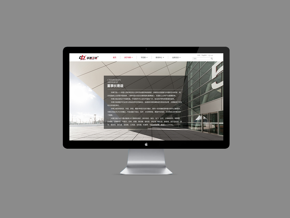 華泰衛(wèi)視,China Arab TV,簡(jiǎn)稱(chēng)CHATV是在習(xí)近平總書(shū)記提出的“新絲路經(jīng)濟(jì)帶”的偉大戰(zhàn)略構(gòu)想下,創(chuàng)建的第一個(gè)并且目前也是唯一一家專(zhuān)注于向阿拉伯地區(qū)國(guó)家傳播中國(guó)文化、進(jìn)行商貿(mào)交流的衛(wèi)星電視,由華泰國(guó)際傳媒集團(tuán)負(fù)責(zé)投資運(yùn)營(yíng),展開(kāi)全球化合作??偛课挥谥袊?guó)香港,節(jié)目制作中心設(shè)在中國(guó)廣州、埃及開(kāi)羅、阿聯(lián)酋迪拜,黎巴嫩貝魯特。