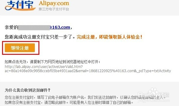 步聚四:在郵箱中會收到一封激活支付寶賬戶的郵件,點(diǎn)擊【請激活您的支付寶賬戶】;