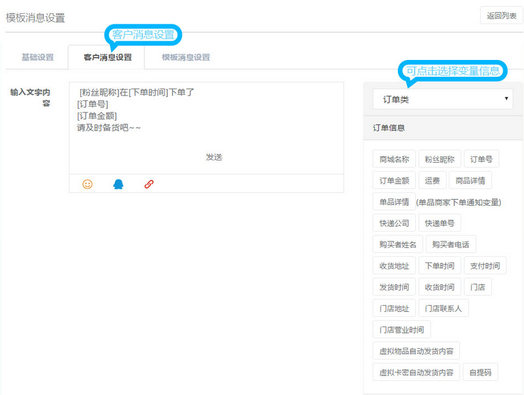 發(fā)送模板消息:選擇此推送類型,直接在模板消息中填寫信息即可