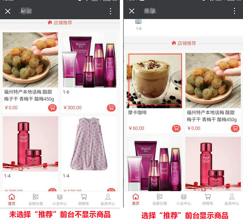 “商品屬性”如不選擇“推薦”,則添加商品在前臺“店鋪推薦”中不會顯示,參見下圖(此商品排序數(shù)字最大):