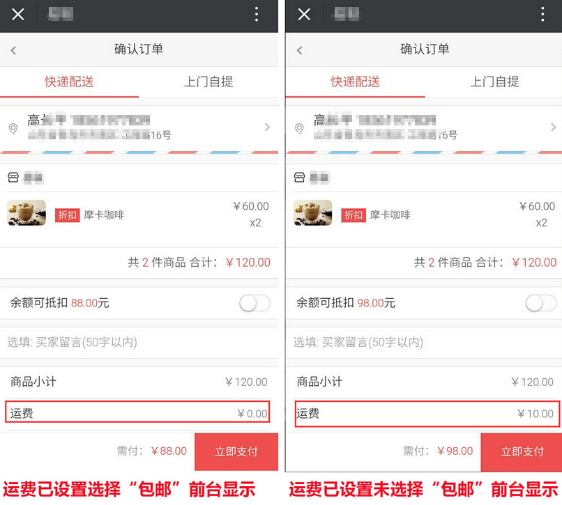 選擇“包郵”后,即使設置了運費,買家購買商品結算時也不會有運費,參見下圖: