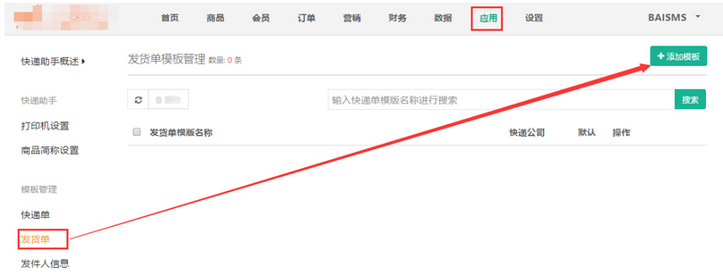 6 添加發(fā)貨單模版,應(yīng)用->快遞助手->發(fā)貨單