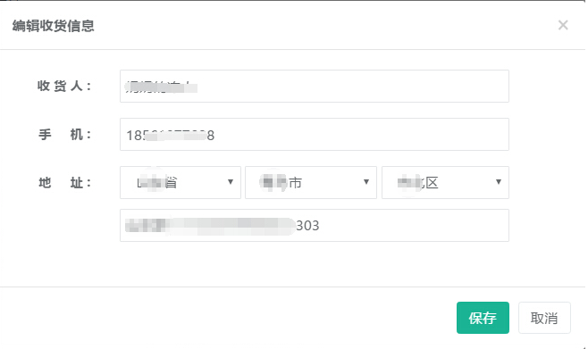 如果買家的收貨地址信息有所改變的話,則可以點擊【編輯收貨信息】更改買家的新收貨地址信息,參見下圖: