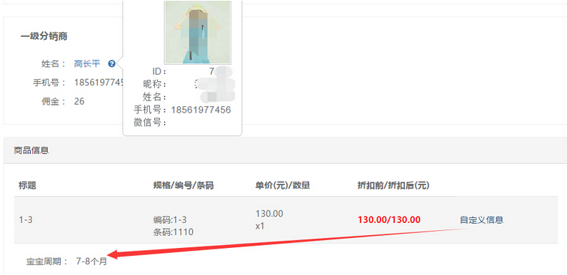 還可查看分銷商的信息及商品添加的自定義的信息,參見下圖: