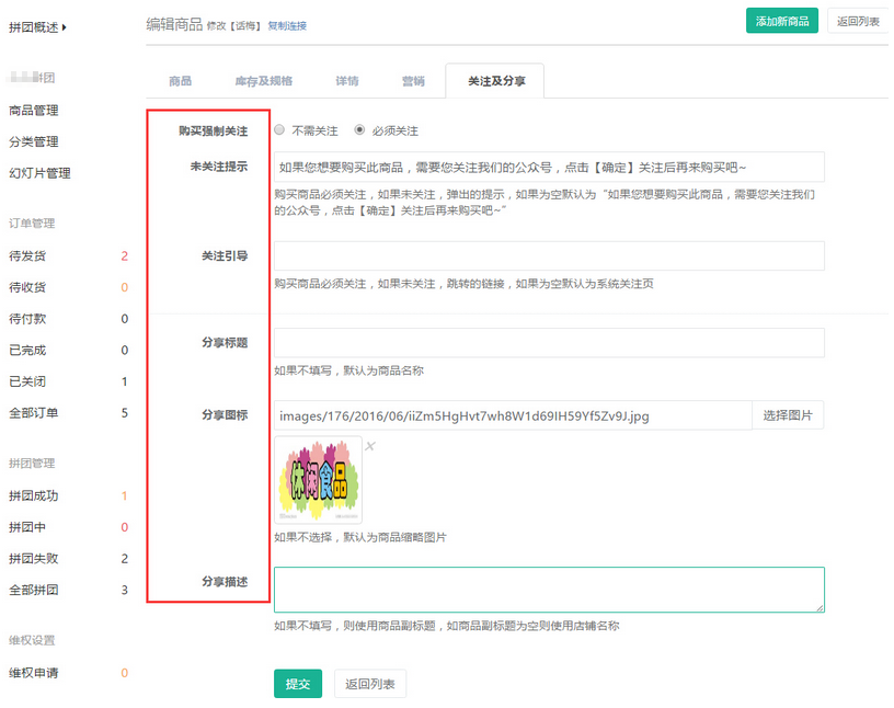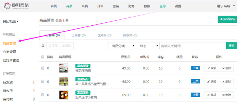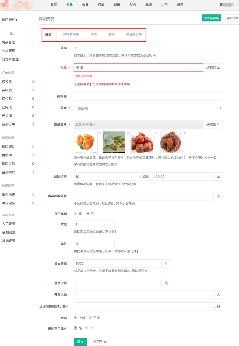 聆科微商城·設(shè)置拼團(tuán)的商品和分類