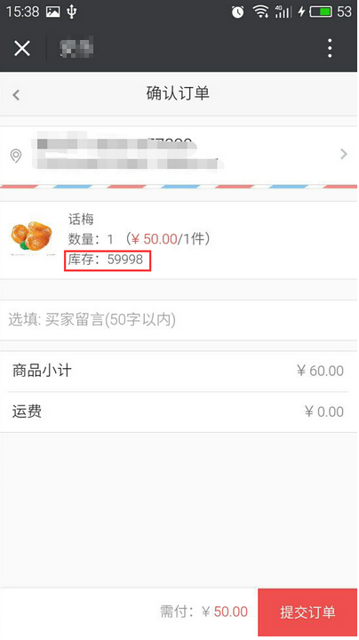 2、勾選“顯示庫(kù)存”買家購(gòu)買或開團(tuán)此商品確認(rèn)訂單時(shí),即可查看商品的庫(kù)存情況,反之則不顯示,參見下圖: