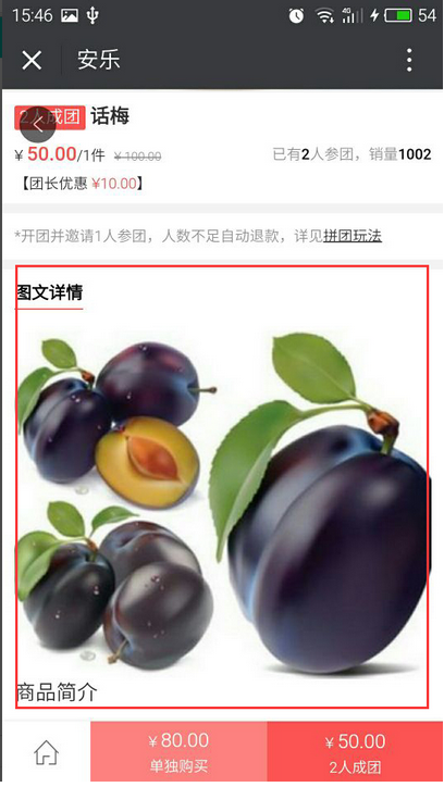 填寫商品有關(guān)的文字及上傳商品圖片,買家點(diǎn)擊需要購(gòu)買或拼團(tuán)的商品即可查看,參見下圖: