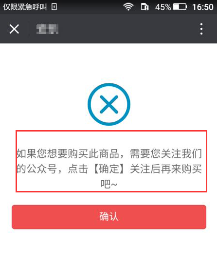 拼團(tuán)添加的商品設(shè)置購(gòu)買強(qiáng)制關(guān)注,則買家購(gòu)買商品時(shí)需關(guān)注后才能進(jìn)行購(gòu)買,填寫未關(guān)注及關(guān)注引導(dǎo)等信息,參見下圖: