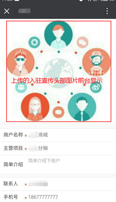 上傳的入駐宣傳頭部圖片會(huì)在手機(jī)端會(huì)員申請(qǐng)時(shí)顯示,參見下圖:
