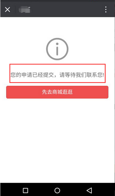 資料填寫提交后,系統(tǒng)會(huì)提示請(qǐng)等待商家聯(lián)系信息,參見下圖: