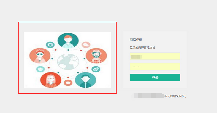 上傳的登錄頁面宣傳圖會(huì)在入駐的多商戶商家登錄頁面顯示,參見下圖:
