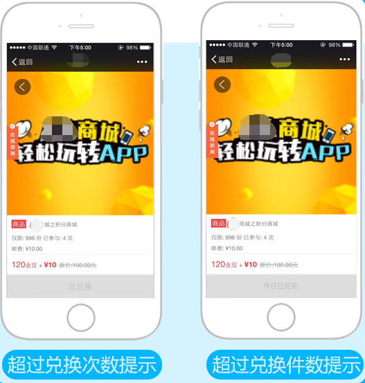 兌換限制:限制每人對此商品兌換的總共次數(shù)及此商品每天提供兌換的份數(shù),超過后無法兌換,參見下圖: