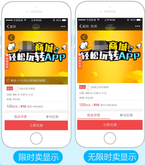 溫馨提示:如果設(shè)置空或0的話,則無限制兌換,直到商品庫存為0即可