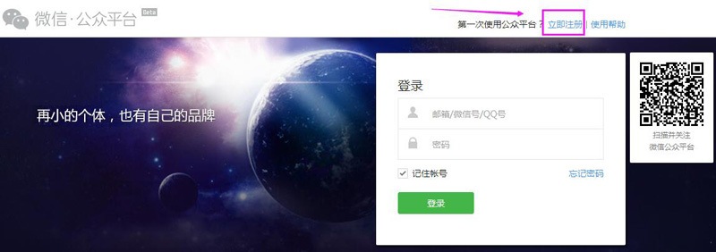 打開微信公眾平臺,點擊注冊