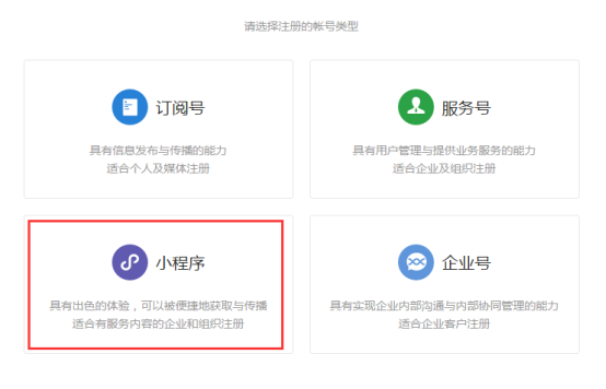 選擇賬號類型:小程序