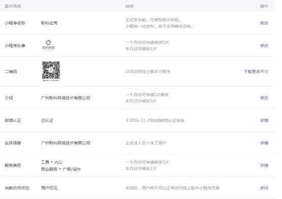 小程序名稱,頭像,介紹等。