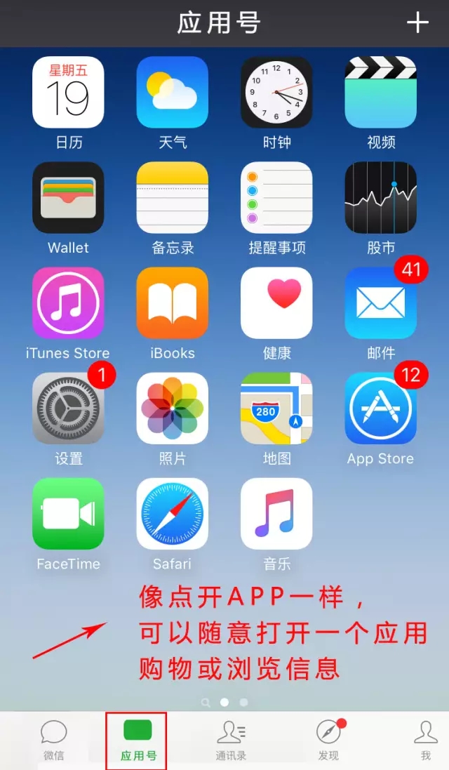 而服務號又能發(fā)文章接觸用戶,引導用戶去添加應用號。